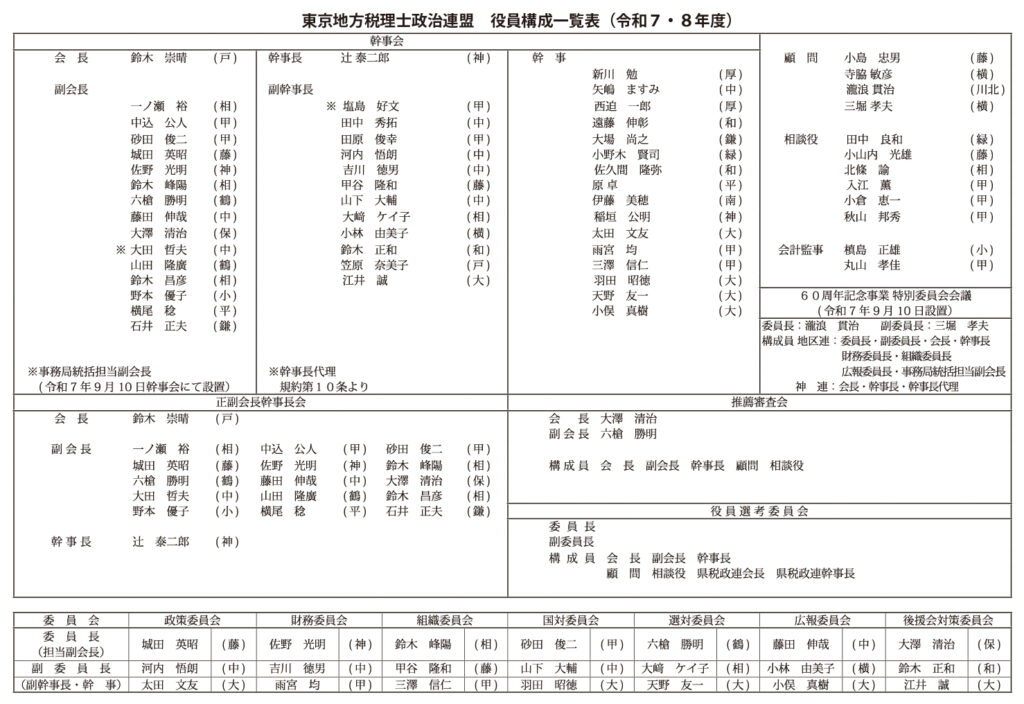 東京地方税理士政治連盟の組織